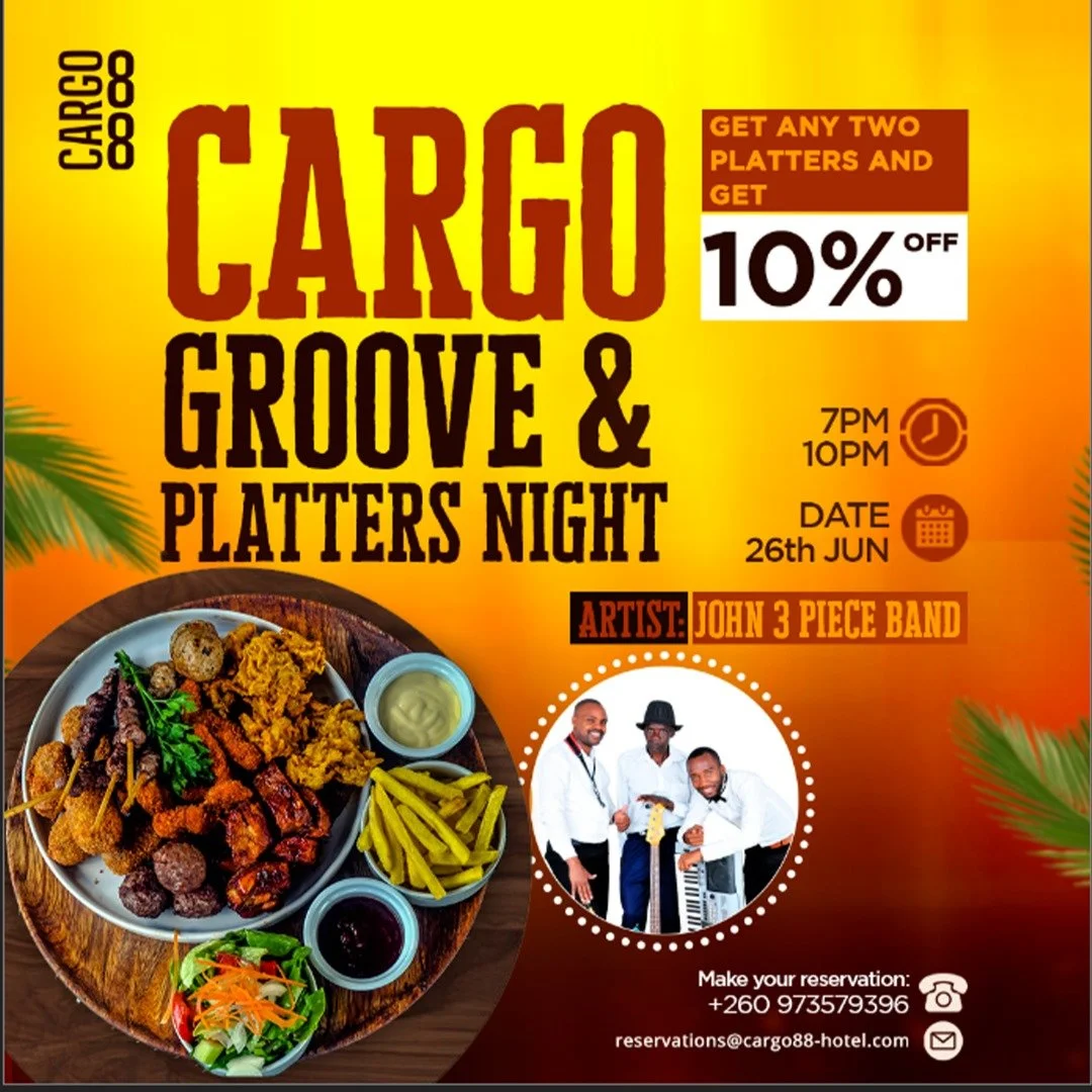 Step into a night of unforgettable shared dining and live music at Cargo88 Lusaka. Indulge in our expertly curated sharing platters, a symphony of flavours designed to bring people together. As you savour each bite, let the John 3 Piece Band provide the perfect musical backdrop for intimate conversations and cherished moments.