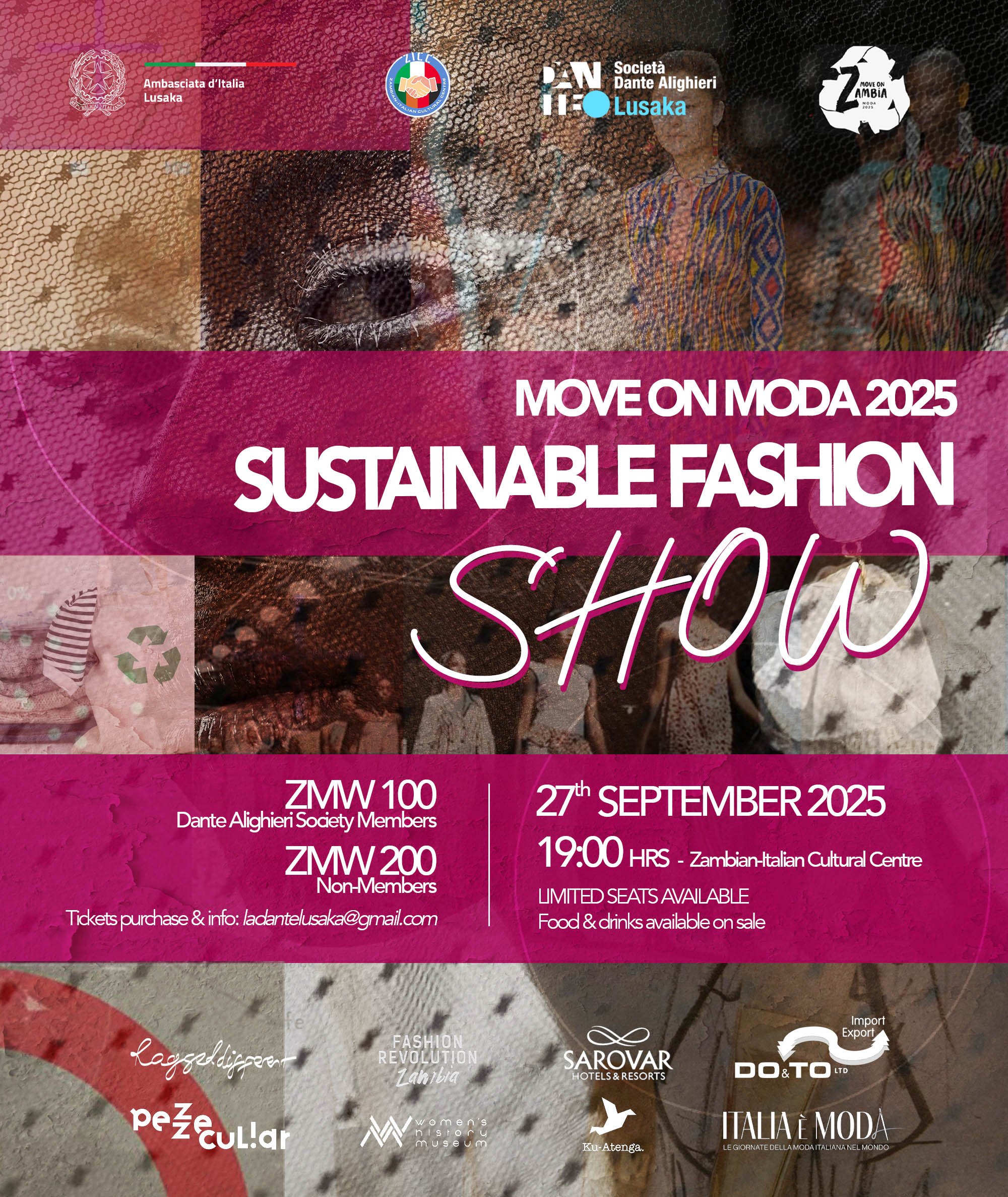 On Saturday, 27 September, five aspiring Zambian fashion designers will present their first upcycled capsule collections as part of the Italian Embassy’s Move On – Moda initiative.