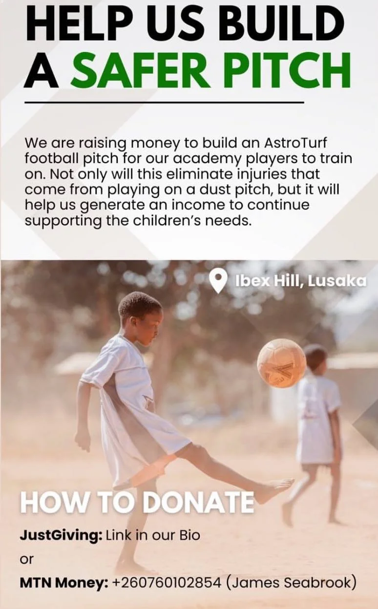 They need help building an Astro turf so that there are less injuries as they provide this amazing support to our Lusaka kids.
